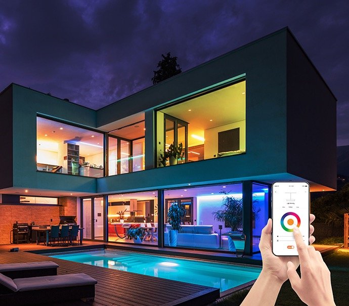 Du sætter straks stemningen i og omkring dit hjem med magien ved farvet lys.